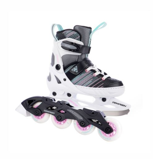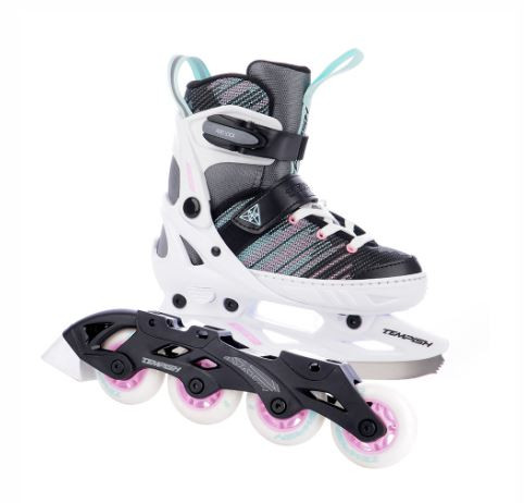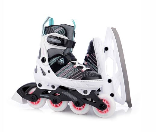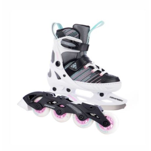 A SYSTENT GIRL DUO állítható, kettős kialakítású gyermekkorcsolya, amelyet egész éves szabadidős korcsolyázásra terveztek. Az intelligens rendszernek köszönhetően könnyedén válthat a jégkorcsolya-élmény és a görgős váz között – egyszerűen lazítsa meg a három csavart.