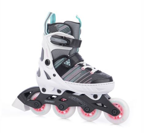 Ezek a korcsolyák egyszerű méretbeállító rendszerrel rendelkeznek a héj oldalán található gombbal – a modell négy méretre állítható, így a gyermek lábának növekedésével párhuzamosan hosszabb ideig használhatók.