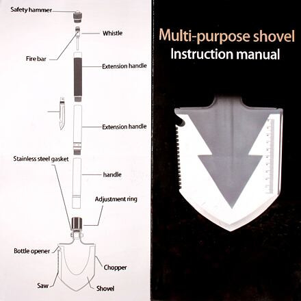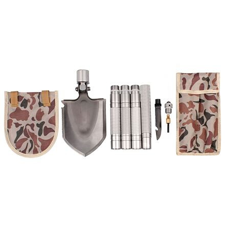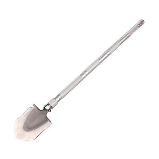 Összecsukható, többcélú acéllapát, hasznos és praktikus eszköz a természetben és kempingezéskor.
