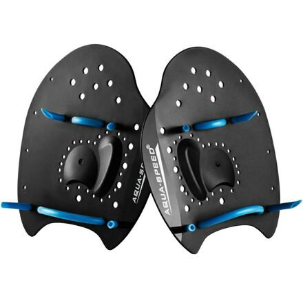 Az Aqua-Speed Skill Paddles evezőit az úszástechnika fejlesztésére, a felsőtest erejének és az általános állóképesség növelésére, az izmok tónusának növelésére és erősítésére tervezték, míg az evezőlapátok és az áramlási lyukak alakja biztosítja a kéz érzékenységét a vízben. Az evezőlapátok nagyszerű eszközök úszásoktatási programokhoz és nyílt vízi úszáshoz is. A speciálisan profilozott, 3 mm vastag ABS műanyagból készült evezők állítható cső alakú csuklópántokkal kényelmes fogást biztosítanak, és megakadályozzák, hogy az evező leessen a vízben. A hidrodinamikus kialakítású kézi evezőlapátok növelik a mobilitást és a sebességet a vízben az úszócsapásoknál megnövekedett ellenállásnak köszönhetően. Csak válaszd ki a megfelelő méretet, és élvezd a vízi fitnesz edzést a Skill Paddle-lel. S – 16 x 15 cm (130 g) M – 19 x 18 cm (180 g) L – 22 x 20 cm (230 g)