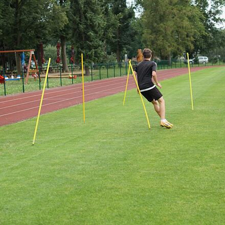 szlalom rudak alapmodellje acélvéggel, rendkívül tartós műanyagból készült, megfelel a természetes füves felületen végzett agility edzés alapvető követelményeinek. A rúd hossza a véggel együtt értendő. A vég hossza 12 cm, a rúd átmérője 2,5 cm.
