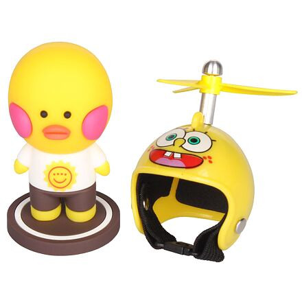 stílusos megjelenésű Spongeduck díszkacsa minden gyermek arcára mosolyt csal. A 9 cm magas figura bármilyen polcot, asztalt vagy autó műszerfalát díszítheti. A figura alján található öntapadós címkének köszönhetően a kacsát szilárdan rögzítheted a fent említett helyekhez. A propelleres sisakot le- és felteheted. A sisakon a sikeres rajzfilmsorozatból ismert sárga tengeri szivacs motívum látható. Gyűjtsd össze a kacsa teljes készletét, amelyet széles kínálatunkban találsz. 6 éves kortól alkalmas. Paraméterek: Méret: 9 x 4 cm Súly: 56 g Anyag: PVC, ABS