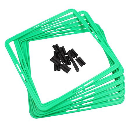 Ez a hat darabos agility akadálykészlet minden sportág sportolója számára alkalmas. Ennek az eszköznek köszönhetően hatékonyan edzheted az alsó és felső végtagok sebességét és koordinációját. A készletet minden korosztályú sportegyesület is használhatja. Iskolákban és óvodákban is használható. A 40 x 40 cm-es négyzet mindkét oldalán speciális lyukak találhatók a csatlakozókkal való csatlakoztatáshoz. Különböző méretű agility pályákat építhetsz belőle. Egészítsd ki ezt az eszközt más agility eszközökkel, és összetett agility pályát hozhatsz létre. Több szín közül is választhatsz.
