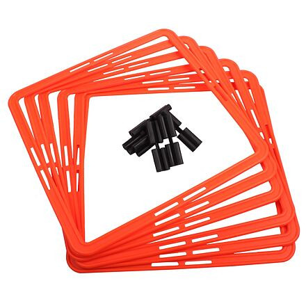Ez a hat darabos agility akadálykészlet minden sportág sportolója számára alkalmas. Ennek az eszköznek köszönhetően hatékonyan edzheted az alsó és felső végtagok sebességét és koordinációját. A készletet minden korosztályú sportegyesület is használhatja. Iskolákban és óvodákban is használható. A 40 x 40 cm-es négyzet mindkét oldalán speciális lyukak találhatók a csatlakozókkal való csatlakoztatáshoz. Különböző méretű agility pályákat építhetsz belőle. Egészítsd ki ezt az eszközt más agility eszközökkel, és összetett agility pályát hozhatsz létre. Több szín közül is választhatsz.