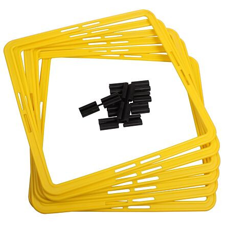 Ez a hat darabos agility akadálykészlet minden sportág sportolója számára alkalmas. Ennek az eszköznek köszönhetően hatékonyan edzheted az alsó és felső végtagok sebességét és koordinációját. A készletet minden korosztályú sportegyesület is használhatja. Iskolákban és óvodákban is használható. A 40 x 40 cm-es négyzet mindkét oldalán speciális lyukak találhatók a csatlakozókkal való csatlakoztatáshoz. Különböző méretű agility pályákat építhetsz belőle. Egészítsd ki ezt az eszközt más agility eszközökkel, és összetett agility pályát hozhatsz létre. Több szín közül is választhatsz.