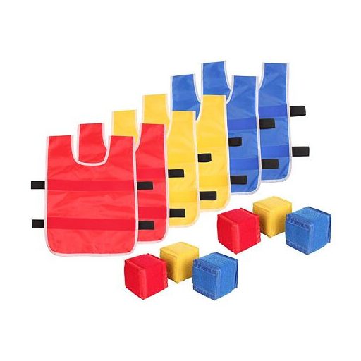 Merco Sticky Vests egy új csapatjáték 2-6 játékos számára, amely gyerekeknek és felnőtteknek egyaránt szórakoztató lesz. A játék a klasszikus kidobós játékon alapul. A csomag hat színes mellényt és hat tépőzáras kockát tartalmaz. Játsszatok egymás ellen vagy kétfős csapatokban. A mellények elején két tépőzáras pánt található, amelyeket el kell találni, hogy megszabaduljatok az ellenféltől. Ha a kocka nem tart, a játékos a pályán marad. A Merco Sticky Vests készletnek köszönhetően sok egészséges mozgást biztosítasz gyermekeidnek szórakoztató módon. Ha további kockákat szeretnél vásárolni, ezeket a Merco Soft kockákat is kínáljuk. Figyelmeztetés: A termék nem alkalmas 3 év alatti gyermekek számára! Mindig felnőtt és felelős felügyelete mellett használd. - szórakoztató játék gyerekeknek és felnőtteknek (kisebb testsúlyú, max. 90 kg-os testsúlyúaknak) - anyag: poliészter, hab - mellény méretei: 55 x 45 cm - kocka méretei: 7 x 7 x 7 cm - csomag: 6 mellény + 6 kocka (3 szín - piros / kék / sárga)