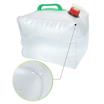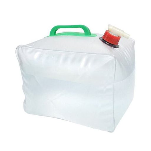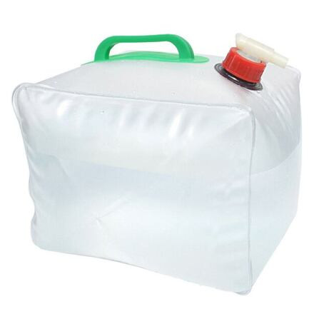 Összecsukható, 10 literes víztartály. Praktikus csappal és megerősített fogantyúval.