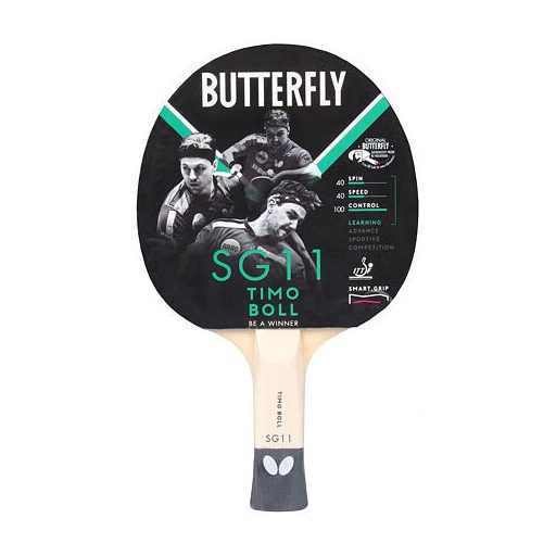Butterfly Timo Boll asztalitenisz ütő sorozatát a legjobb kortárs európai játékosról nevezték el. A Timo Boll SG11 modellt hobbi, de kezdő játékosok számára tervezték, akik a bajnok Boll kivételes képességeit szeretnék elsajátítani, és hozzá hasonlóan a legjobb eredményeket elérni. Ha úgy szeretnél játszani, mint a bajnok, elengedhetetlen a tökéletes technika, stílus és a villámgyors támadó ütések elsajátítása. A Timo Boll SG11 modell 1,5 mm-es szivacsréteggel rendelkezik, anatómiailag formázott nyéllel, amely segíthet ebben. Az ütő nyélének közepén található bevágás nagymértékben leegyszerűsíti a fogást. Az egyedi nyélforma minimalizálja az ujjak csúszását, és javítja a fogás érintkezését a tenyérrel. A Timo Boll SG11 asztalitenisz ütő megbízható eszköz azok számára, akik a bajnok csodálói, és egy napon szeretnének úgy játszani, mint ő.