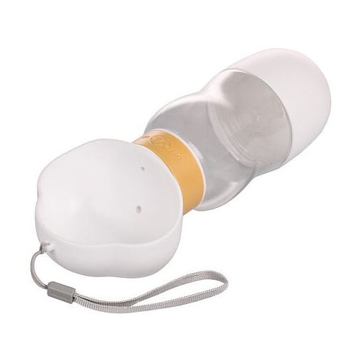 Akár hosszú túrákra, akár rövid sétákra indulsz, vagy szeretnéd betartani kedvenced helyes ivási rendjét, a Travel 2in1 kutyakulacsnak nem hiányozhat a felszerelésedből. Megtöltöd a kulacsot vízzel, lezárod egy csavaros kupakkal, majd csak el kell forgatnod a sárga kereket ("be" állás), hogy a víz a fehér tálba folyjon. A kutya egyszerűen ihat az így előkészített itatóból. A kulacs lezárásához fordítsd vissza a sárga gyűrűt ("ki" állás). A Travel 2in1 második jellemzője a kutyatáp vagy jutalomfalat rekesz, amely a kulacs alján található. Az utazókulacs HIPS és PET műanyagból készült, 350 ml víz és 200 ml granulátum űrtartalmával. Ezzel az utazókulacssal többé nem kell aggódnod amiatt, hogy kutyád sokáig víz nélkül lesz úton. Paraméterek: méretek: 26 x 10,5 x 8 cm súly: 180 g kulacs űrtartalma: 350 ml granulátumtartály űrtartalma: 200 ml