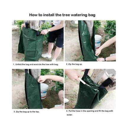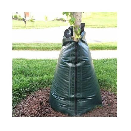 A 75 literes öntözőzsák egy praktikus eszköz, amelyet minden kertész értékelni fog. A zsák a fa csepegtető öntözésének elvén működik. A zsák alján kis lyukak találhatók, amelyeken keresztül a víz lassan szabadul fel, és 5-8 órán át öntözi a fát. Ennek eredményeként a víz mélyebben behatol a fa gyökereihez. A zsák 75 liter víz űrtartalma. Egyszerűen tekerje a fa köré, rögzítse cipzárral, és öntse a vizet a felső lyukba (3. kép). A 75 literes öntözőzsák legfeljebb 15 cm törzsátmérőjű fákhoz alkalmas. Paraméterek: - anyag: PE ponyva - súly: 342 g/m2 - űrtartalom: 75 l (20 gallon) - fokozatos öntözés 5-8 órán át