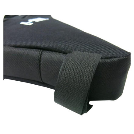 Kisebb, praktikus táska tépőzáras rögzítéssel kerékpárvázra. Tartós poliészterből készült, 0,7 l űrtartalommal.