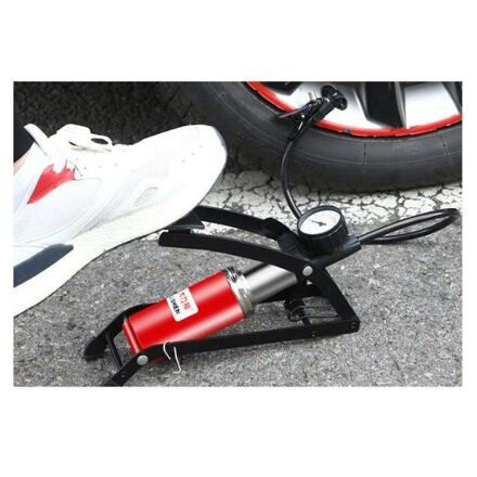 Hordozható lábpumpa manométerrel (100 PSI / 7 BAR). Adapterekkel és tűvel sportlabdák, felfújható játékok, kerékpárok stb. felfújásához.