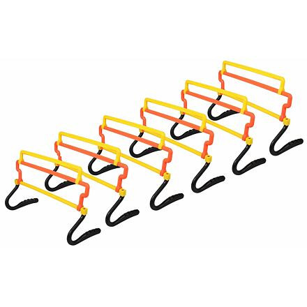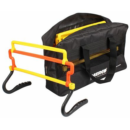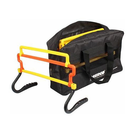 A hat darabos Merco Universal gátkészlet tartós, könnyű, nagy sűrűségű polietilénből készült, praktikus burkolatban. A vízszintes és függőleges láberő edzésére tervezték. A 44 cm széles Merco Universal műanyag gát 15 cm, 25 cm és 30 cm magasságban állítható, ami nagyobb variálhatóságot és nehézségi fokozatot biztosít az edzéshez. A készlet teljes súlya 2,5 kg, és beltéren és kültéren is használható.