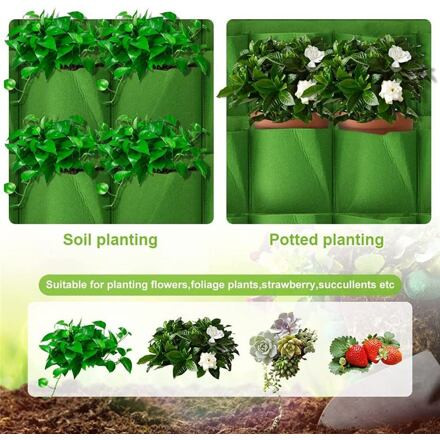 Falra akasztható textil virágcserép beltéri és kültéri használatra. 9 zsebbel kisebb növényeknek.