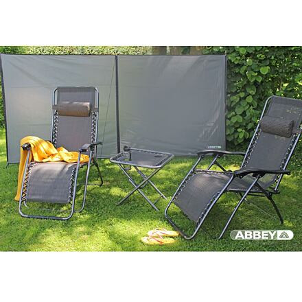 Az Abbey Wellington összecsukható paraván praktikus eszköz a kertbe, nyaraláshoz és kempingezéshez. Rövid időn belül létrehozhat egy olyan paravánt, amely magánéletet és egyben védelmet nyújt a szél és a nap ellen. A paraván 185T poliészterből készült és acélszerkezettel rendelkezik. Összeszerelés után 3 m hosszú és 140 cm magas. A praktikus hordtáskának köszönhetően mindig könnyen tárolható és szállítható. A csomag talajcövekeket és rögzítőköteleket is tartalmaz. Paraméterek: - anyag: 185T poliészter - acélrudak, átmérő 16 mm - rozsdamentes acél cövekek, hosszúság 19 cm - 5 db feszítőkötél - méretek: 300 x 140 cm - praktikus hordtáska mellékelve