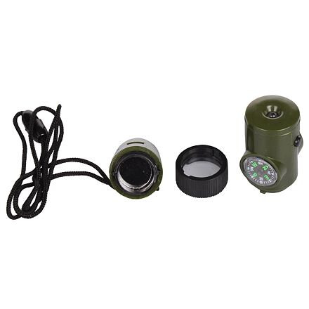 A Whiz 7in1 egy multifunkcionális síp, amely minden felderítőnek a segítségére lesz a természetben. A síp összesen hét funkcióval van felszerelve, többek között síppal, iránytűvel, hőmérővel, tükörrel, nagyítóval, LED lámpával és nejlon nyakba akasztható zsinórral. A kis méret garantálja, hogy a síp mindig Önnél lehet. Ennek köszönhetően még nehéz erdei körülmények között sem fog eltévedni, és mindig hazatalál. Paraméterek: - méretek: 10 x 3 x 3 cm - átmérő: 3 cm - súly: 38 g - anyag: ABS műanyag, nejlon Whiz 7in1: - síp - iránytű - hőmérő - tükör - nagyító - LED lámpa (2x LR41) - nejlon zsinór akasztáshoz