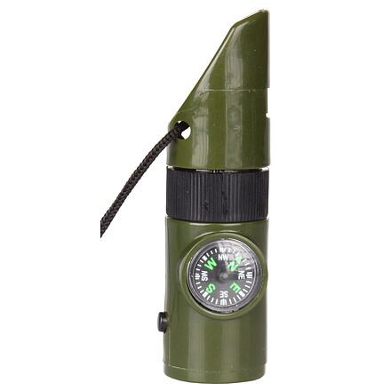 Műanyag multifunkcionális síp 7 funkcióval, természetjáráshoz. Méretek 10 x 3 x 3 cm.