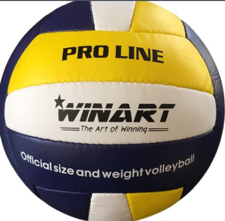 Gyakorló (iskolai) röplabda, szintetikus bőrből, 18 részes, kézzel varrott, színes kivitelben.