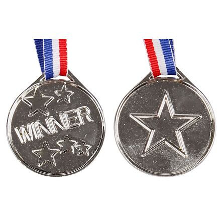 Gyermek műanyag érem sikeres fiatal sportolóknak. Ezüst szín.