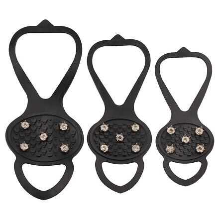 A kompakt és könnyű, csúszásgátló hágóvas megvéd a jégen, hóban vagy nedves füves felületeken való elcsúszástól. A tartós és rugalmas gumiból készült Winter Steps hágóvas könnyen felhelyezhető bármilyen sport- vagy szabadtéri cipőre. A lábfej elején található 5 masszív acél tüske védelmet nyújt a csúszás ellen. Méretek: S: 24-34-es cipőmérethez, teljes hossz 20 cm, szélesség a talp tetején 8 cm M: 35-41-es cipőmérethez, teljes hossz 24 cm, szélesség a talp tetején 9 cm L: 42-46-os cipőmérethez, teljes hossz 27 cm, szélesség a talp tetején 11 cm 1 pár súlya: 80 g (S), 100 g (M), 124 g (L) Anyag: gumi, acél