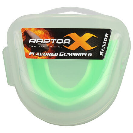 minőségi Raptor-X fogvédő ízesítéssel alkalmas jégkoronghoz és más kontakt sportokhoz. Junior és Senior méretben kapható. Ez a védő megfelel a biztonsági és higiéniai előírásoknak. Ízek: piros=eper, zöld=borsmenta, lila=fekete ribizliA védő formázása:1. Meleg víz.2. Helyezze a védőt vízbe körülbelül 10 másodpercre.3. Ezután helyezze a védőt hideg csapvízbe körülbelül 1-2 másodpercre.4. Helyezze a védőt a szájába, és harapjon erősen körülbelül 40 másodpercig.5. Vegye le a védőt, és tegye hideg vízbe 5 percre.6. Próbálja ki a védőt a tökéletes illeszkedés érdekében.