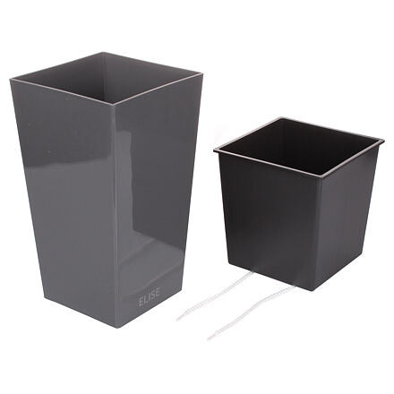 stílusos, díszes, fényes felületű Elise Lesk virágcserép ideális kiegészítője otthonának és kertjének. A kivehető tálcás, négyzet alakú virágcserép tömör műanyagból készült, amely fagyálló és UV-stabilizátorral van ellátva, így télen vagy napsütéses nyáron is gond nélkül hagyhatja a kertben. A virágcserép beépített, csavarozható túlfolyóval rendelkezik az esővíz elvezetéséhez. Az Elise Lesk 15 modell beépített kanócos öntözőrendszerrel rendelkezik. Az Elise Lesk 20 / 25 / 30 modellek Elise Smart System öntözőrendszerrel is megvásárolhatók. A virágcserép minden sarkában kampók találhatók a belső tartály kényelmes kihúzásához. Paraméterek: Elise Lesk 15Magasság: 26 cmFelső szél hossza: 14,5 cmÜltetőtér magassága: 15 cmElise Lesk 20Magasság: 36,5 cmFelső szél hossza: 19 cmÜltetőtér magassága: 20 cmElise Lesk 25Magasság: 46,5 cmFelső szél hossza: 24 cmÜltetőtér magassága: 25 cmElise Lesk 30Magasság: 57,5 cmFelső szél hossza: 28,5 cmÜltetőtér magassága: 30 cm