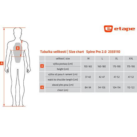 Az ETAPE Spine Pro 2.0 hátvédő tökéletesen illeszkedik a testhez, így maximális kényelmet és biztonságot nyújt minden téli sportok szerelmesének, akik minőségi védelmet keresnek, miközben a kényelmet is hangsúlyozzák. Az EN 1621-2 európai szabvány szerinti jóváhagyás garancia a biztonságra. A FOAMFLEX 3DTM nedvszívó hab maximális védelmet és kényelmet biztosít. A lycra anyagok és az elasztikus háló kombinációja optimális szellőzést biztosít. A mellény külön mosható a kivehető nedvszívó habnak köszönhetően. Spine PRO 2.0: - a ČSN EN 1621-2 szabvány, 1. osztály szerinti jóváhagyás - FOAMFLEX 3DTM nedvszívó hab a maximális védelemért és kényelemért - kiterjesztett farkcsontvédelem - Lycra és rugalmas hálós anyagok kombinációja az optimális szellőzésért és kényelemért - csúszásgátló szilikon kezelés a derékon - állítható rugalmas derékpánt tépőzáras SafeTM-mel = 100%-os ruházatvédelem - a nedvszívó hab eltávolításának és a mellény mosásának lehetősége Méretek / Magasság: M (150 - 165 cm) L (160 - 180 cm) XL (175 - 190 cm) XXL (175 - 190 cm) A megadott értékek csak tájékoztató jellegűek, és a megfelelő méret az adott alaktól függően változhat. Anyag: 40% poliuretán, 35% poliészter, 25% poliamid Ápolás: kézzel mosható hideg vízben, teregetve szárítandó, ne szárítsa szárítógépben, ne használjon öblítőt, ne fehérítse, ne vasalja, ne vegytisztítsa.