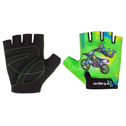 A kerékpáros kesztyűk minden jó kerékpáros alapvető felszereléséhez tartoznak. Több funkciót is ellátnak – védik a tenyérrészt, növelik a kényelmet kerékpározás közben, és divatkiegészítőként is szolgálnak. Az Etape Tiny gyermek kerékpáros kesztyű aranyos dizájnnal rendelkezik, anatómiai varrással a tenyérrészen, csúszásgátló bevonattal és egyszerű tépőzáras rögzítéssel. A Tiny modell több színváltozatban kapható, hogy illeszkedjen az Etape gyermek kerékpáros sisakhoz. A gyártó szerint a kesztyű mérete megközelítőleg megfelel a gyermek életkorának.