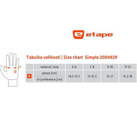 kerékpáros kesztyűk minden jó kerékpáros alapvető felszereléséhez tartoznak. Több funkciót is ellátnak – védik a tenyérrészt, növelik a kényelmet kerékpározás közben, és divatkiegészítőként is szolgálnak. Az Etape Simple gyermek kerékpáros kesztyűk anatómiai tenyérvarrással, csúszásgátló bevonattal és egyszerű tépőzáras rögzítéssel rendelkeznek. - frottír az izzadság felitatására - anatómiai tenyérvarrás - csúszásgátló tenyér - a mérettáblázat csak tájékoztató jellegű, és a feltüntetett értékek az adott kéz méretétől függően változhatnak.