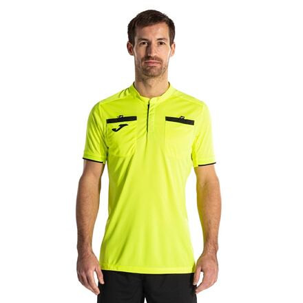 Joma Referee Short Sleeve játékvezetőknek szánt sportpólóban még egy megerőltetőbb mérkőzésen is remekül fogod érezni magad. A sportmez könnyű és légáteresztő 100% poliészterből készült, felső gombos rögzítéssel. A pólónak két elülső zsebe van tépőzáras záródással és egy rávarrt Joma márkalogóval. A modern dizájnnak köszönhetően jól fogod magad érezni és jól is fogsz kinézni ebben a mezben.