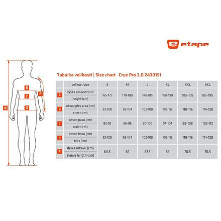 Az Etape Crux Pro 2.0 modern férfi kapucnis kabátja ideális sporttevékenységekhez, de kialakításának köszönhetően hétköznapi viseletre is alkalmas. A kabát fő anyagai 95% poliészter és 5% elasztán. A kabát Nanoloft anyagból készült, elöl és hátul hőszigetelő anyaggal, valamint SuperDryntex rugalmas anyaggal. A kabát 2 elülső zsebbel, klasszikus hosszú cipzárral és fényvisszaverő biztonsági elemekkel rendelkezik. A kabát -10 °C és 10 °C közötti hőmérsékleti tartományra készült. Figyelmeztetés: Ne használjon öblítőt, ne fehérítse, ne szárítsa szárítógépben, ne vasalja, ne vegytisztítsa. A NANOLOFT puha szintetikus anyagból készült, ezért kivételes hőszigetelő tulajdonságai nedvesedés esetén sem változnak. A szigetelőréteg főként levegőmolekulákat tartalmaz, így ez az anyag nagyon könnyű és tökéletesen csomagolható. SuperDryntex - funkcionális, rugalmas anyag poliészter mikroszálakból, amely nagyon gyorsan szárad, eltávolítja az izzadságot és a nedvességet a bőrről. Antibakteriális kezelésének és foltállóságának köszönhetően nagyon könnyen karbantartható. Az anyag különböző súlya eltérő hőszigetelő tulajdonságokat kínál.