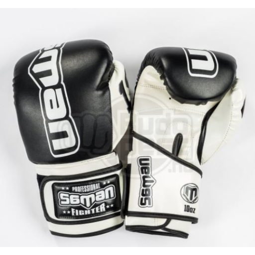 Boxkesztyű, Saman, Colours 1985, műbőr, fekete/fehér, 14 oz méret